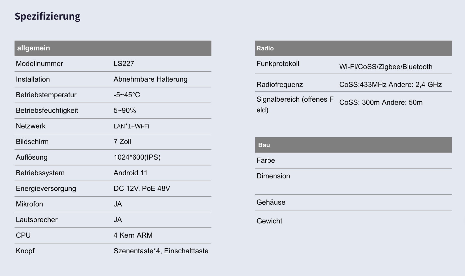 - Unterstützt mehrere Protokolle, einschließlich CoSS, Zigbee, Wi-Fi