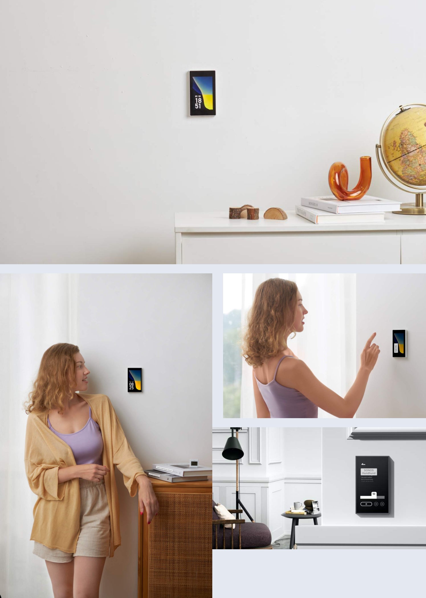 Nature Mini L ist ein Smart-Home- Bedienfeld, das an der Kreuzung von beweglichen Wegen in Ihrem Zuhause installiert ist. Mit einem Touchpad von Rand zu Rand im Vollbildmodus kann es sich um einen Lichtschalter in der Wand, ein Szenenpanel, eine Wetteranzeige oder sogar wie ein Thermostat sein. Benutzer können verschiedene Arten von intelligenten Geräten zu Hause steuern, indem sie zwischen den Modi wie Auswärts, Schlaf, Film und Essen wechseln; oder ihre Vorhänge präzise steuern, die Helligkeit und Farbe ihrer Lichter und die Temperaturen ihrer Klimaanlage anpassen. Nature Mini L verbessert effektiv Ihre intelligente Lebenserfahrung!