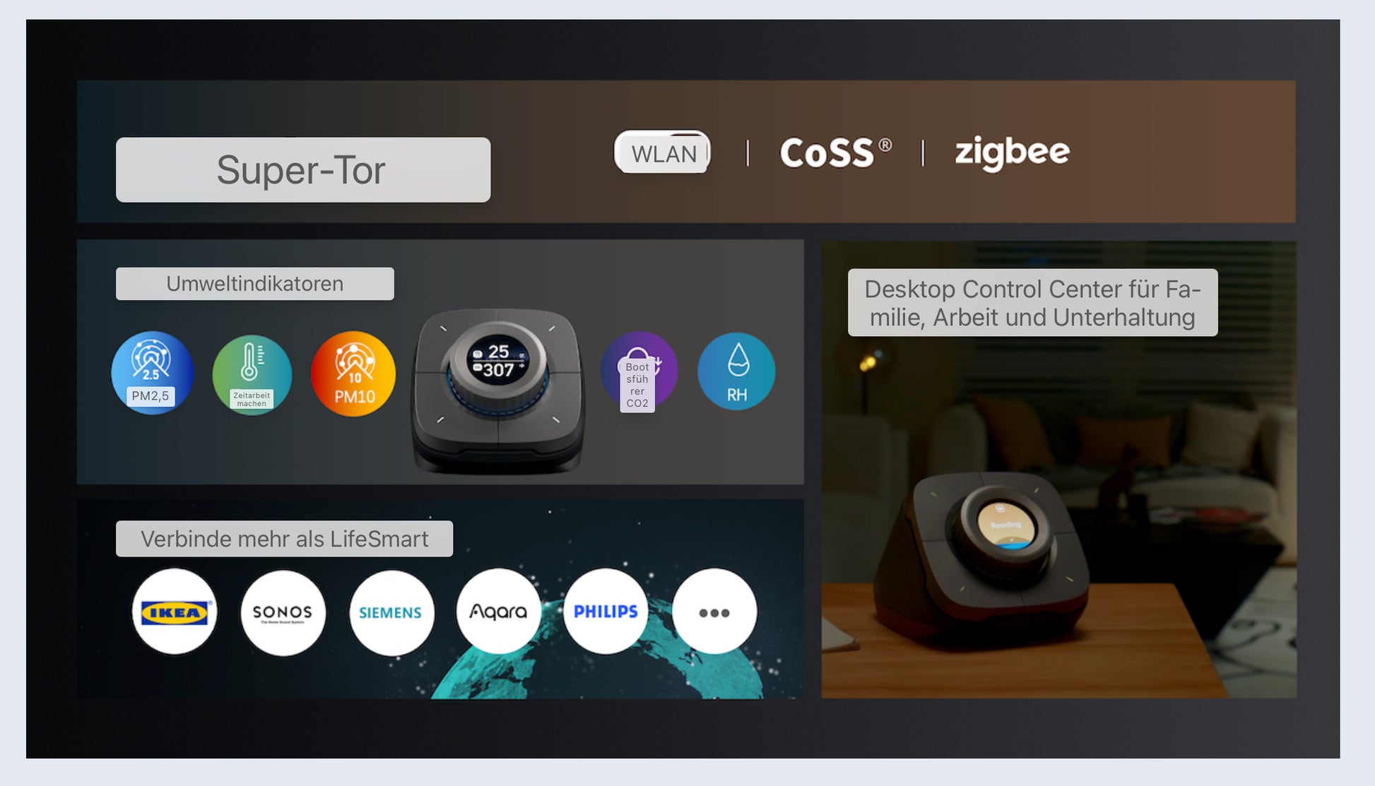 Unterstützt mehrere Protokolle, einschließlich CoSS, Zigbee, Wi-Fi